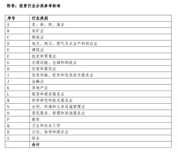 投资行业分类参考标准