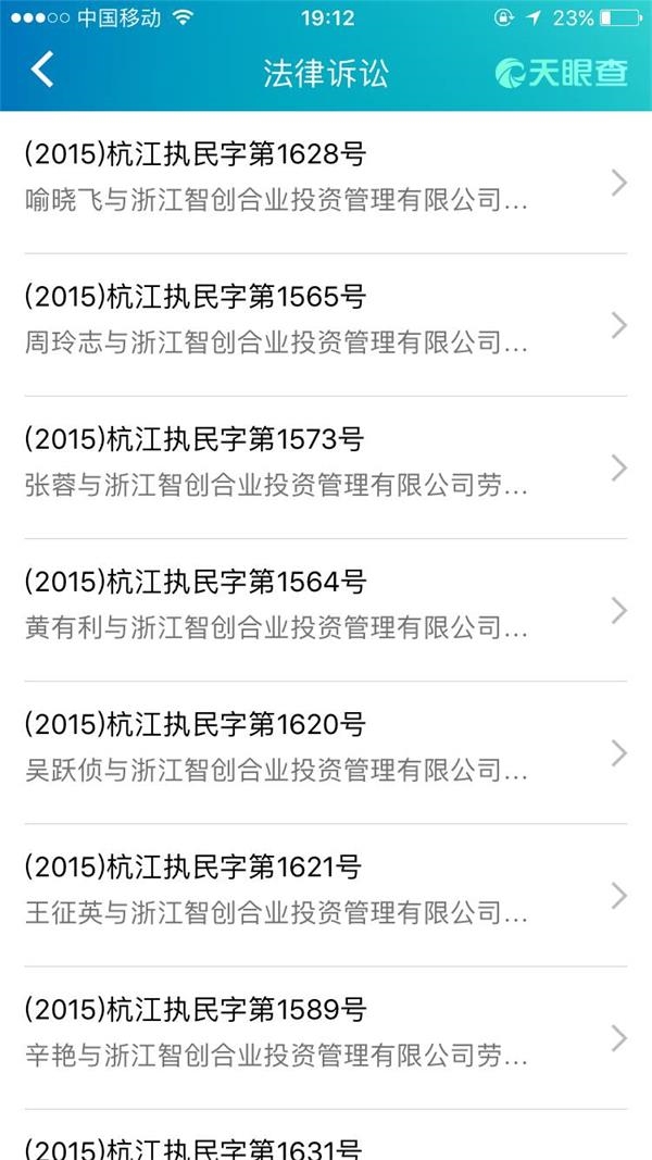 工商信息也显示,“浙江智创合业投资”存在44起法律诉讼。