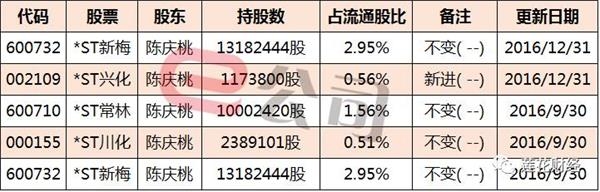虽然在*ST长油上亏了钱,但陈庆桃仍旧独爱ST股。翻看其最新持股,*ST常林、*ST川化、*ST新梅与*ST兴化,四只均为*ST股。