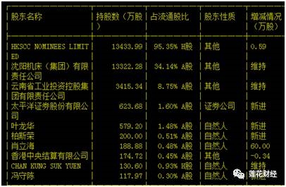资料显示,截至去年三季度,叶龙华约持有*ST昆机股份579.2万股,占公司流通股比例为1.48%,柏斯荣持有*ST昆机200万股,占公司流通股比例为0.51%,此外,肖立海持有公司股份约188万股,冯守陈持有118万股。