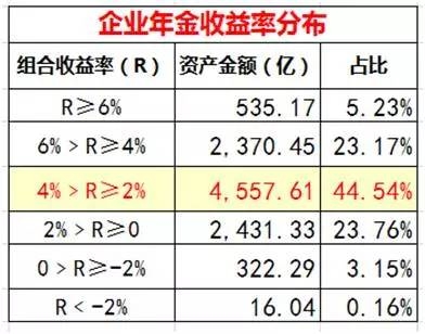 从业绩分布来看,很少有企业年金是亏损的,收益率在2%到4%之间的企业年金金额占比接近45%。