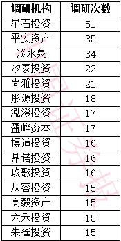根据朝阳永续的数据,今年初至4月25日,调研次数排名前15的分别是星石投资、平安资产、淡水泉、汐泰、尚雅、彤源、泓澄、盈峰、博道投资、鼎诺投资、玖歌投资、从容投资、高毅资产、六禾投资、朱雀投资,堪称“劳模”。