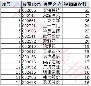 朝阳永续数据显示,今年初至4月25日,被私募调研最多的15只股票如下排名: