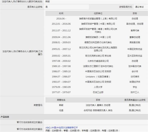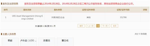 工商注册信息也显示,瑞银资产管理(上海)有限公司的唯一股东是瑞银资产管理(香港)有限公司。公司主要成员包括韩箭、陈章龙、董日成、卢永燊等。