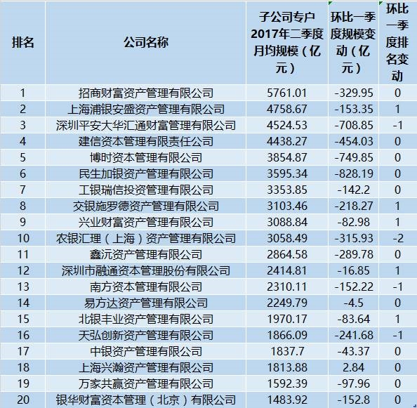 8月3日,根据基金业协会公布的数据显示,基金专户管理资产月均规模前20名基金总规模为35316.49亿元,环比2017年一季度基金专户规模缩水785.77亿元。