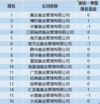 其中,招商基金、汇添富基金、中银基金、广发基金、鹏华基金的名次都没有发生变动,分别稳居第七名和第10-13名。