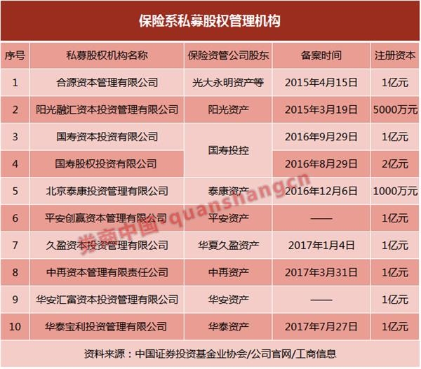 10家保险系私募概况