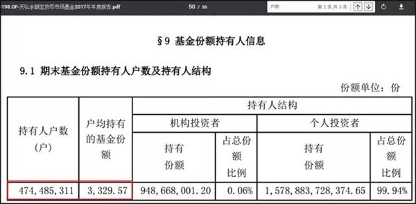 当然,8亿户的基民会有重复计算的部分,比如一个余额宝的持有人,同时买了理财通上的货币基金,如果再买一只股票基金,并在2017年年底仍然持有这三只,这样就算了3人次,对应的8亿人次仍有重复计算的部分。