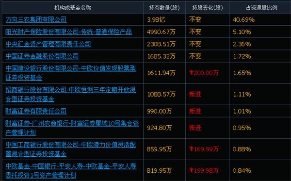 沧州明珠得到了众多机构投资者的增持及新进持有,其中金元顺安基金-浙商银行-万向信托-万向信托-星辰14号事务管理类单一资金信托新进持有沧州明珠2213.15万股;另外JF资产管理有限公司-JF中国先驱A股基金较前期增持59.68万股,期末持有655.13万股;深圳福星资本管理有限公司-福星高照1号私募投资基金新进持有430.02万股;亚太财产保险有限公司-传统-普通保险产品3新进持有430.02万股;云南信托·大西部丝绸之路1号集合资金信托计划新进持有430.02万股。