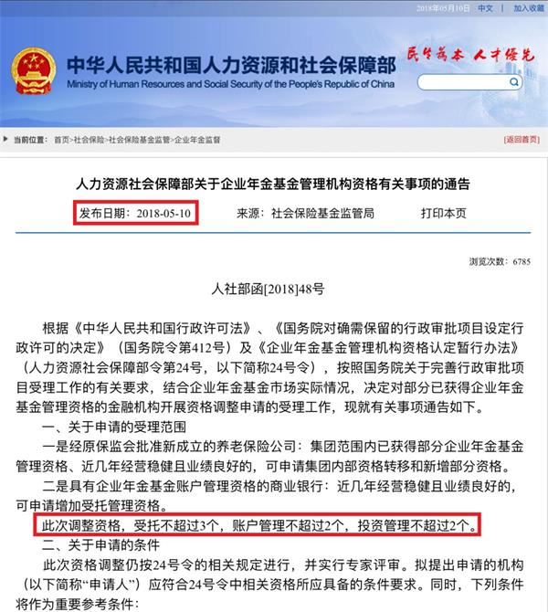 关注1.3万亿规模企业年金管理资格的小伙伴们注意了!