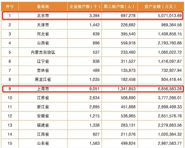 数据还统计了上半年分地区企业年金情况,从数据表中可以看出,上海地区是年金金额、企业账户数和职工人数最高的地区,其次是北京。