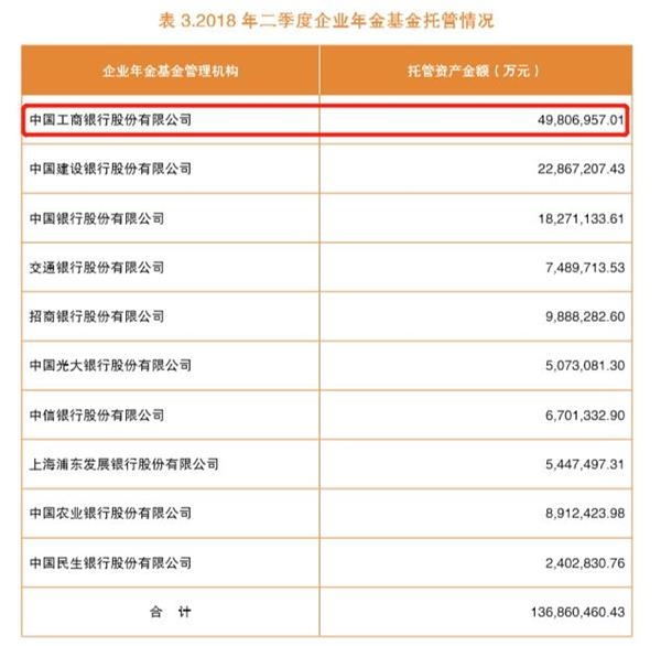 从二季度企业年金基金账户的管理情况来看,工商银行无疑是最大的基金账户管理方。工商银行有企业账户数32681个,个人账户数979万多个,托管金额4980亿元。
