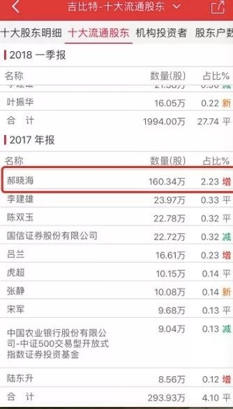 去年第四季度,郝晓海曾位列吉比特最大流通股东,持有160.34万股,占比2.23%。
