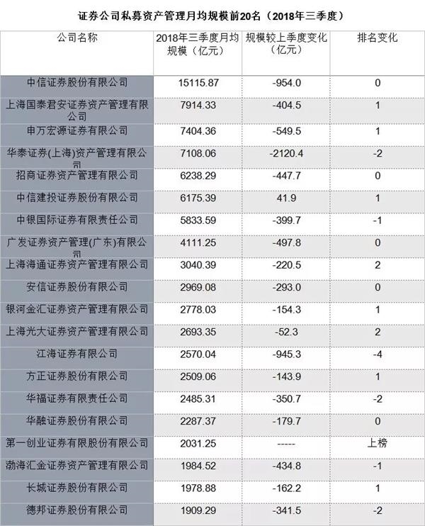 具体来看,20家券商中,除去新上榜的第一创业,还有18家券商资管月均规模出现不同程度的下降。