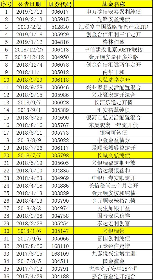 同日,先锋基金也发布基金募集失败公告,先锋安盈纯债基金经证监会许可准予注册募集,但截至2019年1月11日止,基金募集期限届满但未能满足基金合同规定的备案条件,故本基金合同不能生效。