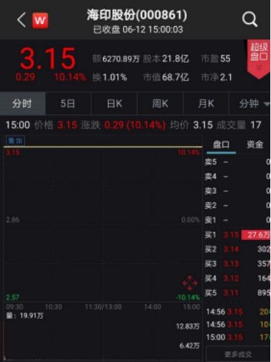 值得玩味的是,海印股份13日上午和下午的股票成交额大相径庭。当日上午,海印股份放量大涨,仅半天的交易额超过4.4亿元,换手率达到6%。然而到下午,海印股份成交量明显下降,全天成交额定格在5.08亿元。