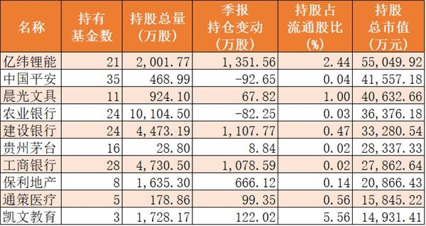 二季度末,创业板“黑马”亿纬锂能季度增持超千万股取代中国平安成为头号重仓股,截至二季度末中银基金旗下21只基金持有亿纬锂能2001.77万股,持股市值达5.5亿元。