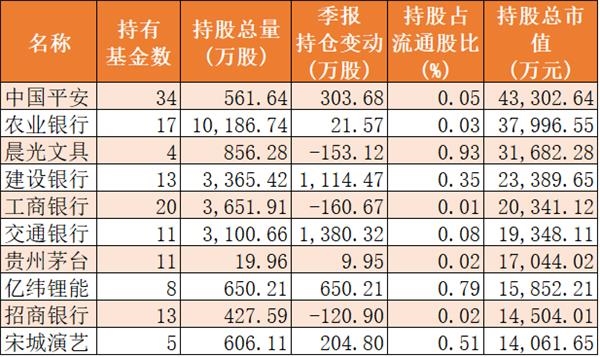 中银基金一季度重仓持股