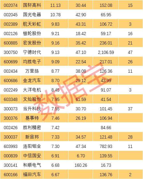 从市场表现方面,数据宝也梳理了进入12月份新能源汽车产业链表现最好的股票,供投资者参阅。