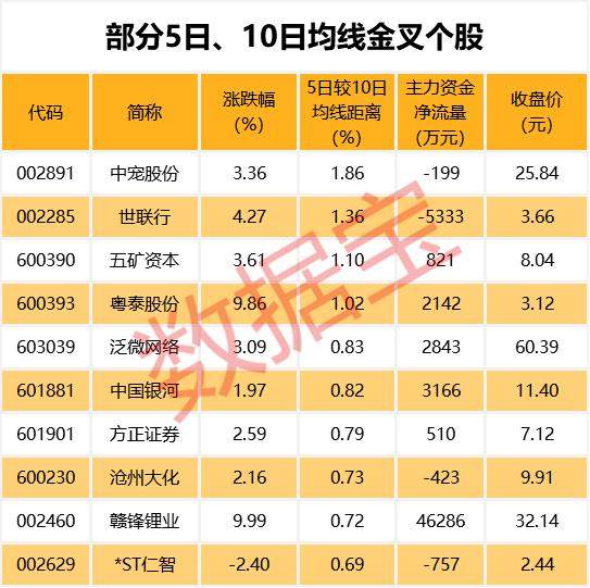 截至12月17日收盘,有175只A股的5日均线主动上穿10日均线,其中中宠股份、世联行、五矿资本等个股的5日均线较10日均线距离最大,分别达1.86%、1.36%、1.10%。