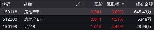 与全天领涨的汽车板块不同,房地产板块午后发力,场内基金随之上扬。具体来看,房地产B(150118.SZ)大涨超6%,房地产基金(512200.SH)、地产B等也有不错的涨幅。