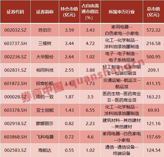 目前,富达基金(香港)有限公司已通过QFII渠道对A股市场进行了布局。而根据其披露的一季报来看,富达基金(香港)的持仓市值约20亿元人民币。其持有的10家上市公司,覆盖了家电、化工、电子通信、医药、建材等多个行业,前三大持仓分别为苏泊尔、三棵树及大华股份。