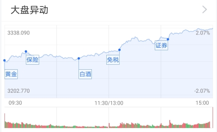 9月18日,两市延续反弹节奏,三大指数小幅高开,开盘后整体震荡走高,午后,大金融板块发力,指数持续上行,沪指收复3300点,深证成指、创业板指均涨逾1%。盘面上来看,行业板块普涨,以券商、银行为代表的大金融板块表现强势,煤炭、地产等低估值板块同样表现活跃,