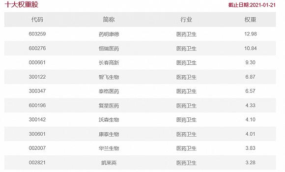 中证指数官网显示,该指数选取主营业务涉及创新药研发的上市公司作为待选样本,按照市值排序选取不超过50家最具代表性公司作为样本。截至1月21日,cs创新药的前十大权重股依次为:
