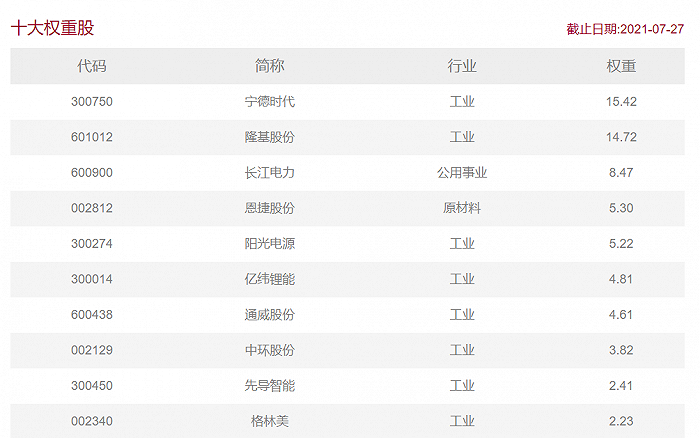 其中,前十大权重股分别为: