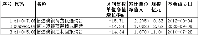 前8月信达澳银3基金跌超14% 老将业绩差达90个百分点