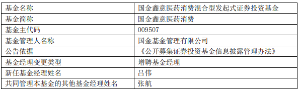 国金鑫意医药消费增聘吕伟为基金经理
