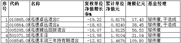 泓德基金前11月5只基金跌超10% 价投老将遇短期挫折