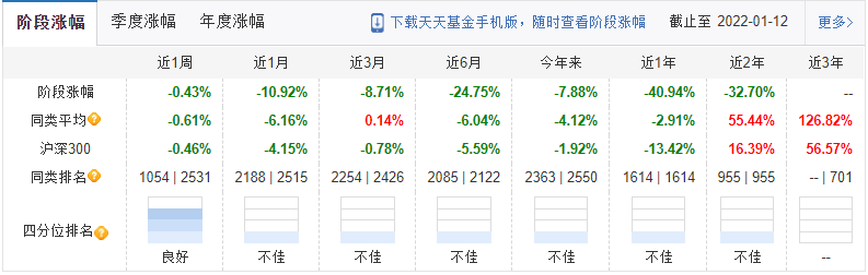 值得关注的是,即便是拉长时间周期看,方正富邦创新动力混合A、C的业绩表现依然欠佳。方正富邦创新动力混合A成立于2011年12月26日,截至2022年1月12日,其近3年、近2年、近1年、近6月的阶段涨幅分别是0.34%、-32.29%、-40.77%、-24.64%。方正富邦创新动力混合C成立于2019年2月20日,截至2022年1月12日,方正富邦创新动力混合C近2年、近1年、近6月的阶段涨幅分别是-32.70%、-40.94%、-24.75%。