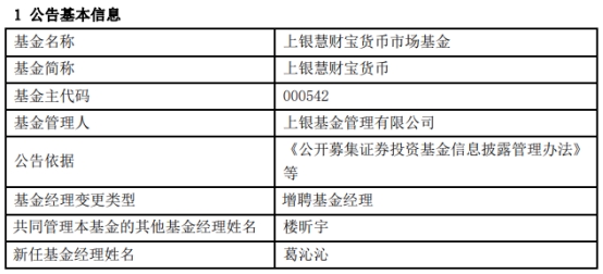 (原标题:上银基金3只基金增聘基金经理葛沁沁)