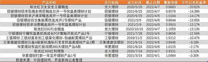 (原标题:权益类理财深陷泥潭:光大理财一只净值破0.69,招银理财三只产品跌幅居前)