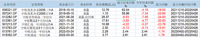 去年11月-今年4月末,中欧预见养老2050、中欧睿智精选一年持有、中欧甄选3个月、中欧汇选一年等4只基金,净值回撤幅度均超过了20%。作为养老目标型的FOF,为何会出现如此大的回撤?