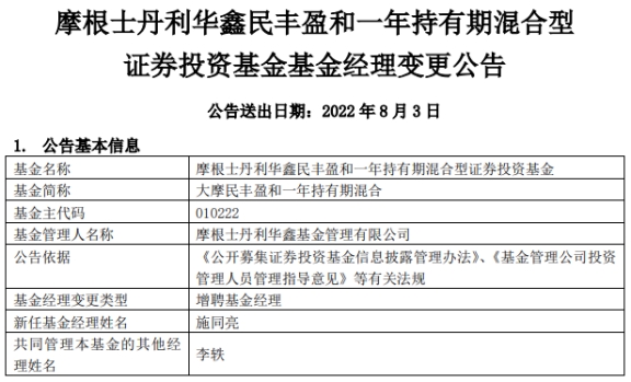 (原标题:摩根士丹利华鑫旗下2只基金增聘基金经理施同亮)