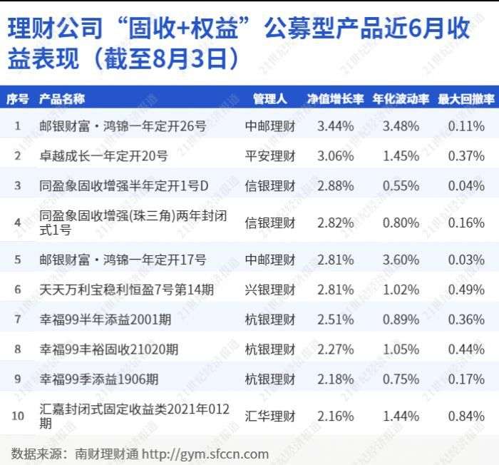 (原标题:独家理财公司“固收+权益”公募型产品近6月业绩表现(截至8月3日))