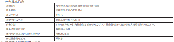 戴鹤忠离任德邦新回报灵活配置混合基金