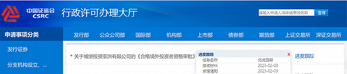 据证监会披露,城堡投资亚洲有限公司提交《合格境外投资者资格审批》(Qualified Foreign Institutional Investor,由此QFII),2月3日的申请状态为“受理通知”。该公司为全球顶尖对冲基金Citadel LLC旗下公司。