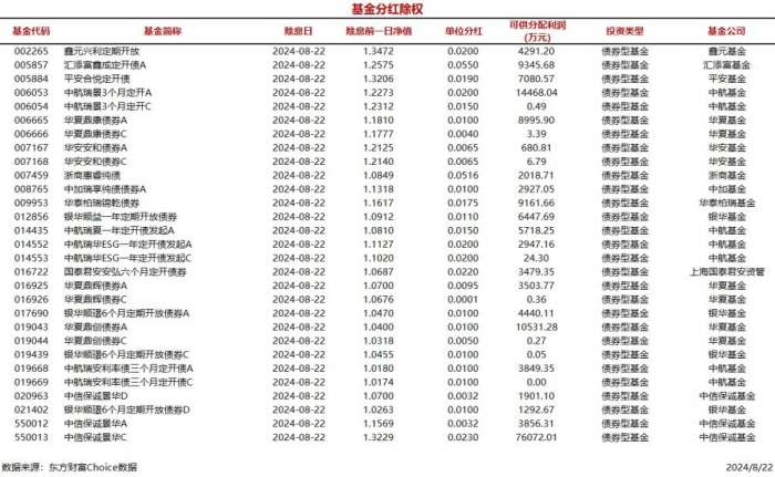 每经AI快讯,据东方财富Choice数据统计,今日共有29只基金分红除权(A/C类分开计算),均为债券型基金,累计可供分配利润18.3亿元。
