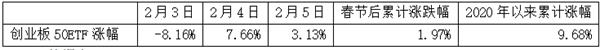 春节后几个交易日,除了首日下跌之外,此后两个交易日,创业板50ETF大幅反弹,很快收复失地,成为上涨最快的宽基ETF之一。