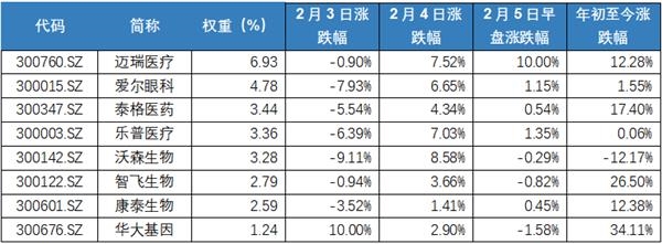 创业板50指数权重占比最高的行业为医药生物、电子、传媒、电气设备、计算机、通信等,科技相关产业占比超过90%,不含温氏股份,科技属性强,短期内受疫情影响较小,中长期投资价值高。其中,医药生物是第一大权重行业,占比29.6%。