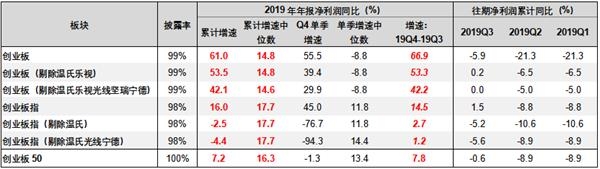 根据最新披露的2019年报业绩预告,创业板50指数全年净利润累计增速7.2%,较三季报回升了7.8个百分点。但从增速的中位数看,创业板50年报增速中位数16.3%,高于创业板的14.8%。