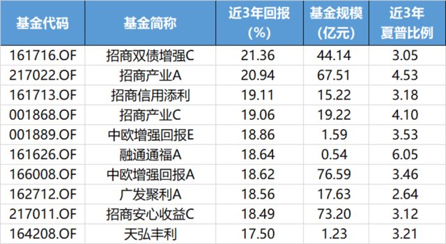 3、看性价比。虽然同其他类型基金相比,债基波动真的算很小,但内部也有些差距的,怎么看呢?教各位一招——看夏普比率这个指标。