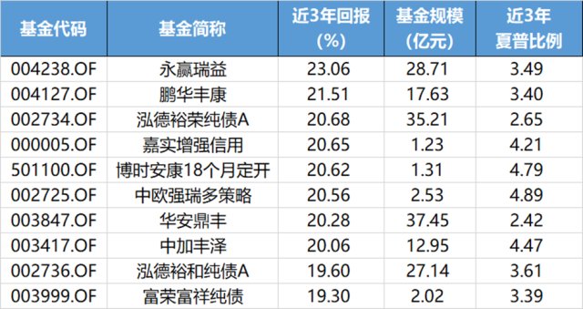 周一小师妹直播时,同大家分享了亲自筛选的近3年业绩靠前、可转债仓位不超过10%、规模不低于5000万、夏普比率超过2、目前开放申购或者单日限购金额不低于1000元的纯债基金、一级债基TOP10,考虑到很多朋友错过了直播,这里再贴一下。还是那句话,不做任何推荐!