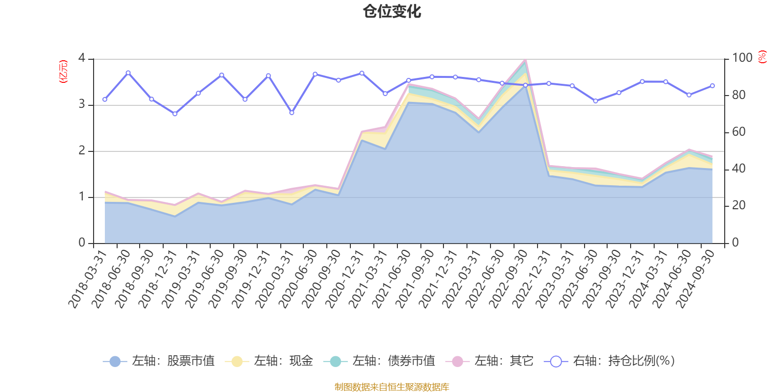 据定期报告数据统计,近三年平均股票仓位为85.26%,同类平均为84.96%。2018年上半年末基金达到92.42%的最高仓位,2018年末最低,为70.18%。