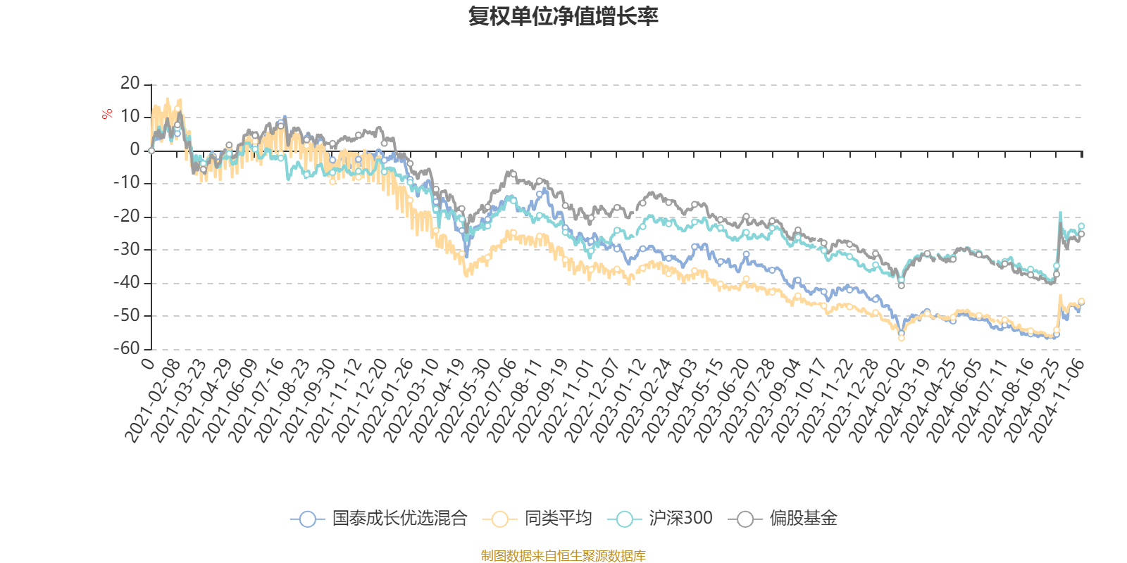 截至11月6日,国泰成长优选混合近三个月复权单位净值增长率为20.84%,位于同类可比基金247/645;近半年复权单位净值增长率为6.71%,位于同类可比基金278/644;近一年复权单位净值增长率为-7.52%,位于同类可比基金551/622;近三年复权单位净值增长率为-43.34%,位于同类可比基金358/393。