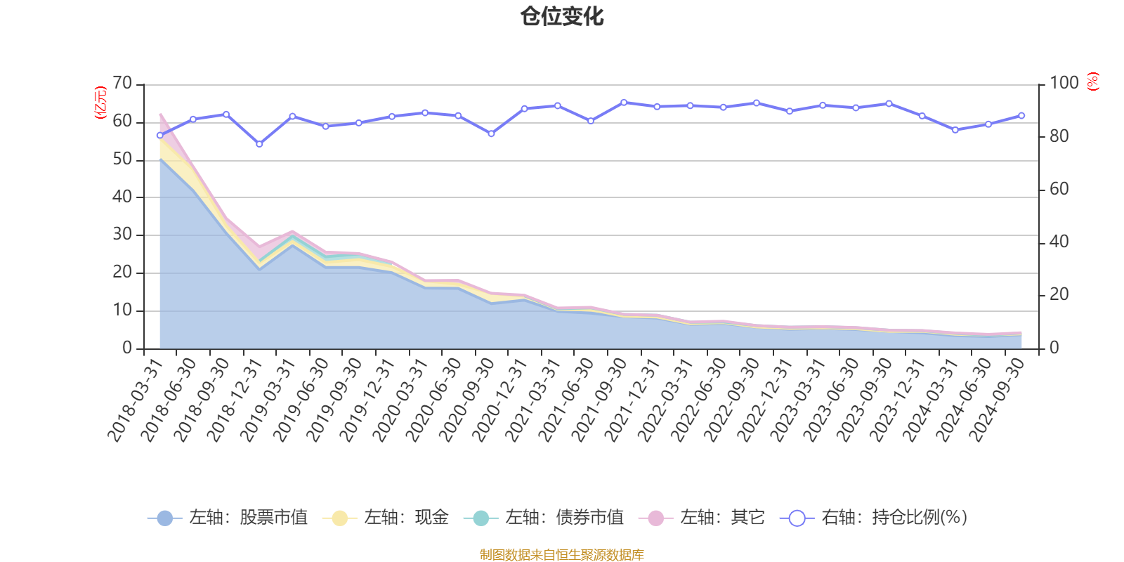 据定期报告数据统计,近三年平均股票仓位为89.78%,同类平均为84.96%。2021年三季度末基金达到93.15%的最高仓位,2018年末最低,为77.41%。