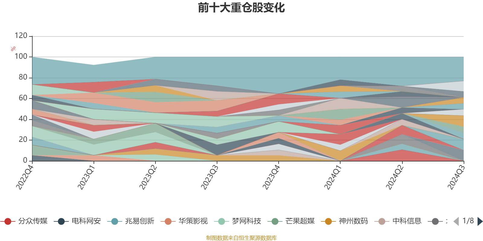 该基金持股集中度较高,近2年前十大重仓股集中度长期超过60%。截至2024年三季度末,基金十大重仓股分别是快手-W、中国软件、三七互娱、恺英网络、中望软件、福昕软件、慈文传媒、太极股份、云赛智联、吉比特。